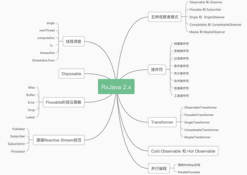 注:在 RxJava 2.x 中, Observables 包含了 Observables、Flowable、Single、Maybe、Completable等