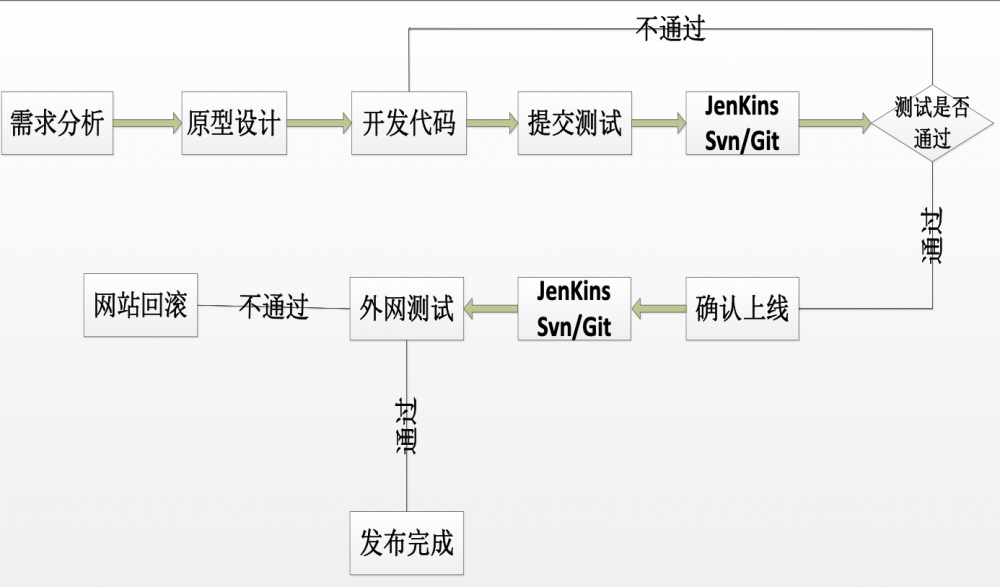 目前主流网站部署方法,通过Jenkins工具平台实现全自动部署+测试,是一个可扩展的持续集成引擎,是一个开源软件项目,旨在提供一个开放易用的软件平台,使软件的持续集成变成可能。Jenkins非常易于安装和配置,简单易用
