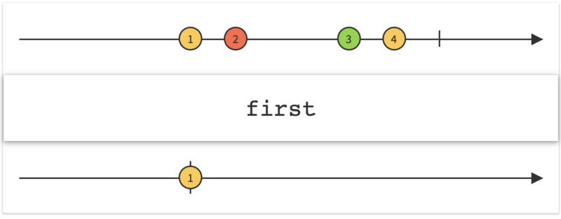 如果只对 Observable 发射的第一项数据,或者满足某个条件的第一项数据感兴趣,那么就可以使用 first 操作符。