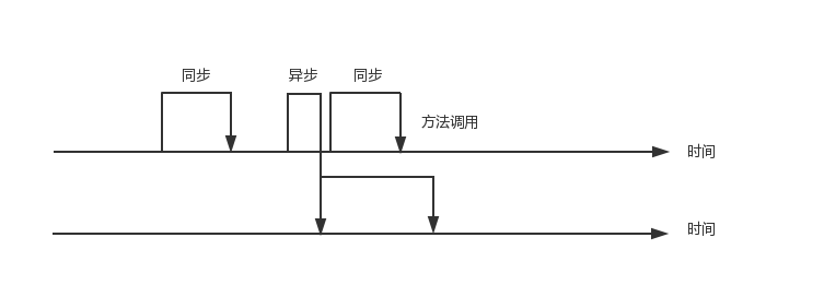 从上图可以知道,随着实时间的轨迹,同步一步一步的执行着,在异步中,当一个异步过程调用发出后,调用者不能立即得到结果,实际上会开启一个线程执行这部分内容,这个线程处理完了之后,通过状态,通知和回调来通知调用者来处理。