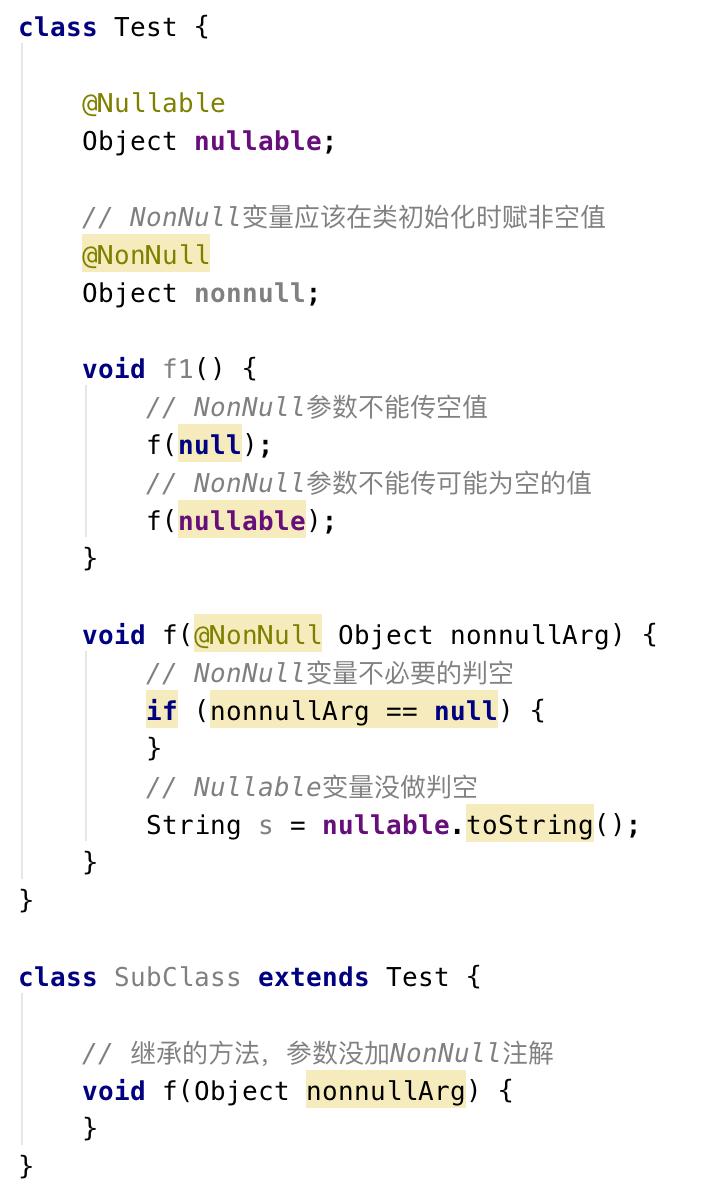 被注解的变量,通过Nullity检查可以有效避免NullPointerException异常,例如: