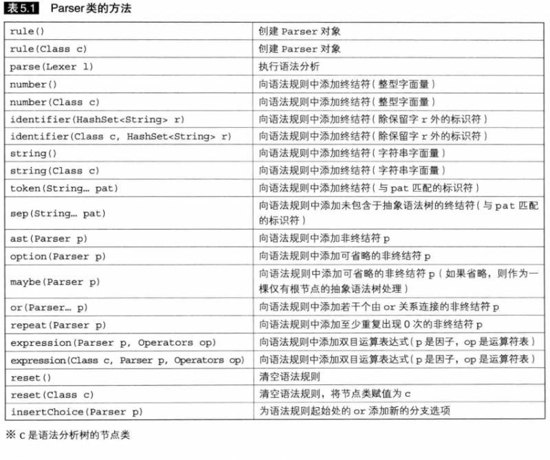 Parser库: 一种解析器组合子类型的库 工作是将BNF写成的语法规则改写成Java语言程序 在书中第十七章有详细解说