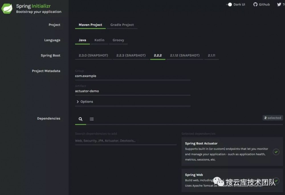 是不是感觉好像健康信息有点少?先别急,那是因为我们创建的是一个最基础的Demo项目,没有依赖很多的组件。