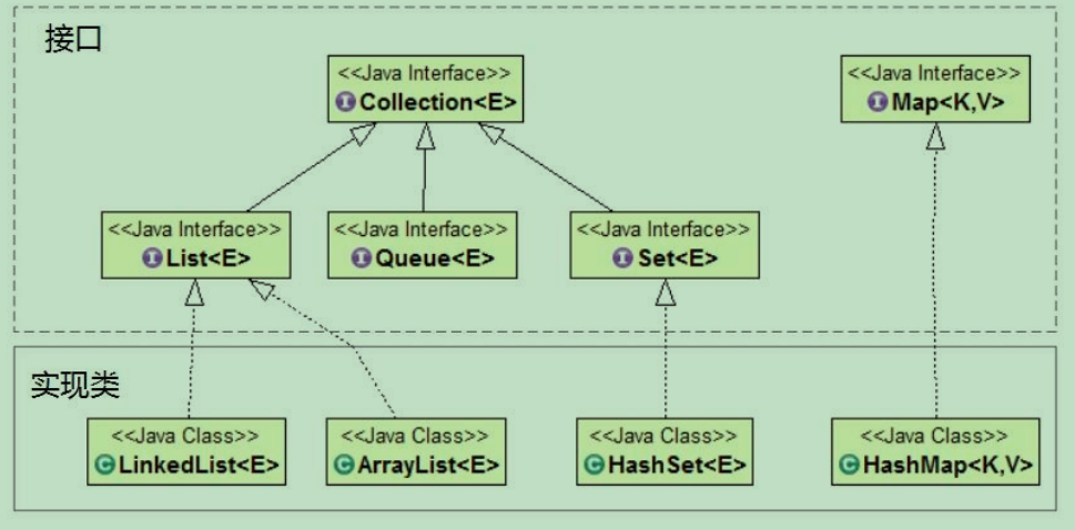 这一篇讲的collection接口;首先,集合是用来 存储数据 的,它是基于某种数据结构数据容器。常见的数据结构:数组(Array)、集(Set)、队列(Queue)、链表(Linkedlist)、树(Tree)、堆(Heap)、栈(Stack)和映射(Map)等结构。 集合大类分为了Collection和Map 。 如下图