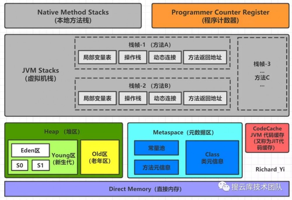 上图描述了当前比较经典的Java内存布局。(堆区画小了2333,按理来说应该是最大的区域)