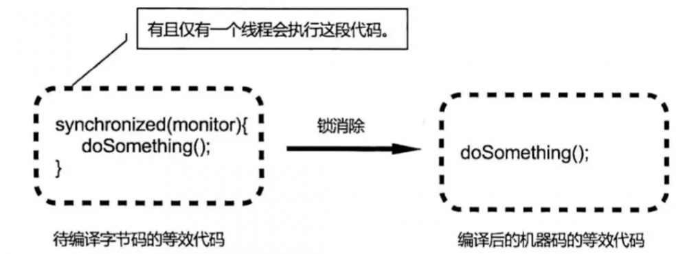 如果通过分析证实,只被一个线程访问,在编译这个代码段的时候就不生成 Synchronized 关键字,仅仅生成代码对应的机器码。
