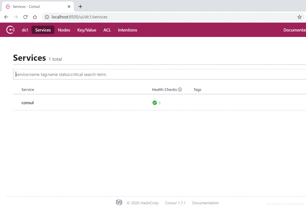 command: agent -server -bind=0.0.0.0 -client=0.0.0.0 -node=consul_Server1 -bootstrap-expect=1 -ui