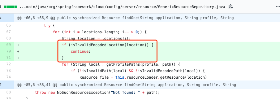 这个洞和之前的 CVE-2019-3799 路由一样,这里不多赘述,选择其中一种路由方式, @RequestMapping("/{name}/{profile}/{label}/**") 来往下走。