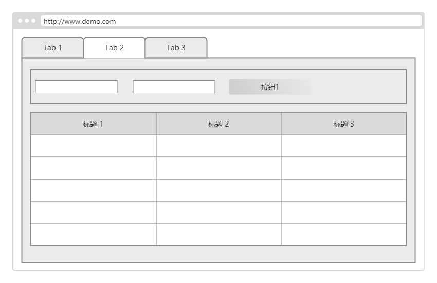页面实际上是 4 个组件,上方区域是 search 组件,下方区域是 list 组件。外层是一个 layout 组件,包裹两个组件。最外层是 element-ui 的 el-tabs 组件。