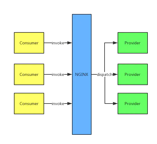 最初的服务化解决方案是给提供相同服务提供一个统一的域名,然后服务调用者向这个域名发送HTTP请求,由Nginx负责请求的分发和跳转。