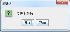 JOptionPane.showConfirmDialog(null,"今天上课吗", "请确认", JOptionPane.YES_NO_CANCEL_OPTION);