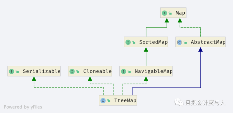 相对 HashMap 而言, TreeMap 涉及的知识点更少些,适合作为熟悉 Map 数据结构的敲门砖。先来看看它的类图: