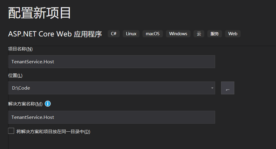微服务的开发应该是模块的,所以TenantService.Host服务名没有放在在ABP微服务解决方案中,选择独立搭建、独立部署的方式。