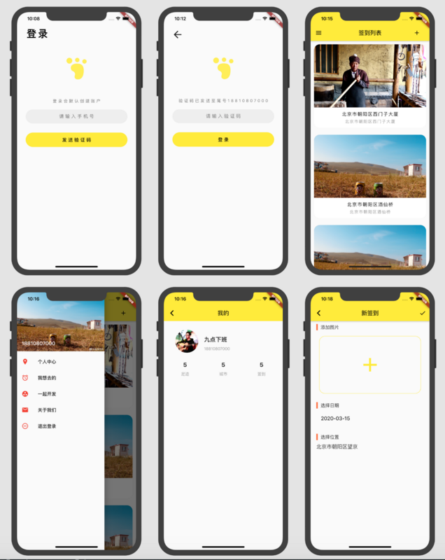 于是,作为一个 Android 开发者,我自己设计开发了个 App,本篇文章谈一谈我对于 Java 服务端开发的理解和实践。这是一个简单的签到类应用,主要的页面如下,顺便提一下,下面的 App 使用 Flutter 开发的。