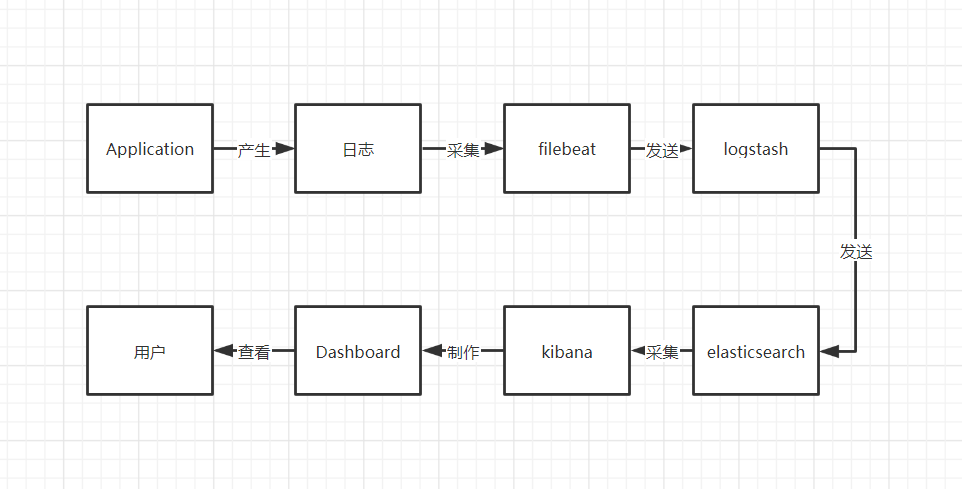 我们这里模拟了用户的操作,并记录到/iio/logs/app.log文件中。主要的业务流程为:APP->filebeat->logstash->elasticsearch->kibanan->User