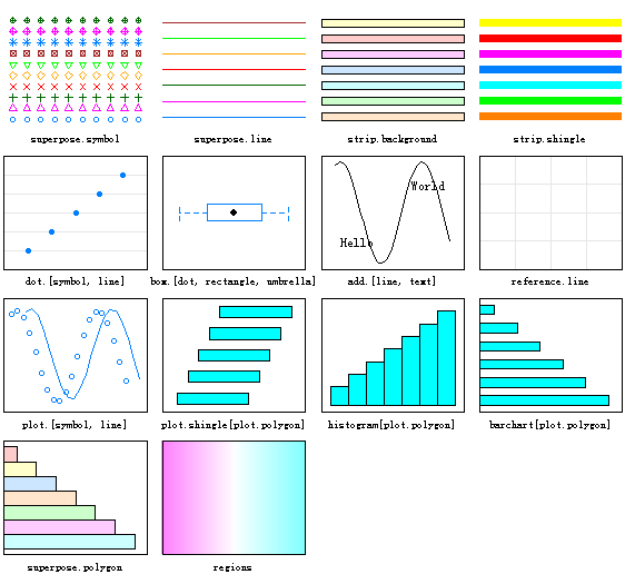 facets :指定条件变量,创建一个栅栏图。表达式如rowvar~ colvar。为创建一个基于单条件变量的栅栏图,可用rowvar ~ .或. ~ colvar
