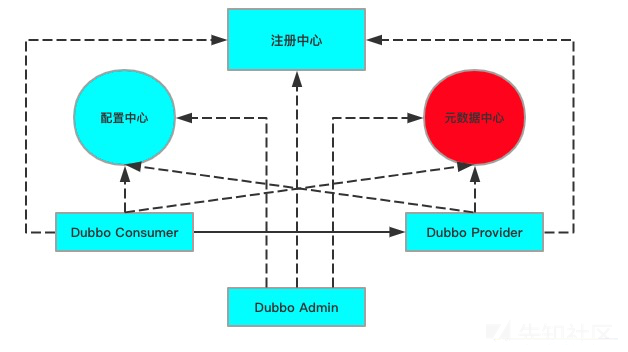 上图所示为dubbo的服务治理架构图,在dubbo2.7以后,多了三大feature,其中之一为元数据中心,习惯使用dubbo的人一般都比较了解,当集群部署dubbo的服务,每一个dubbo服务都会把自身信息注册至注册中心,也就是途中,dubbo客户端可访问的注册中心。