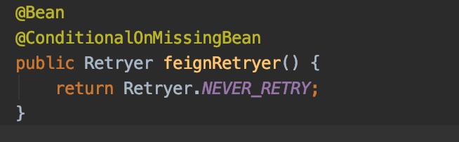 当然,也可使用默认的retry配置文件,下方是feign.Retryer的源码