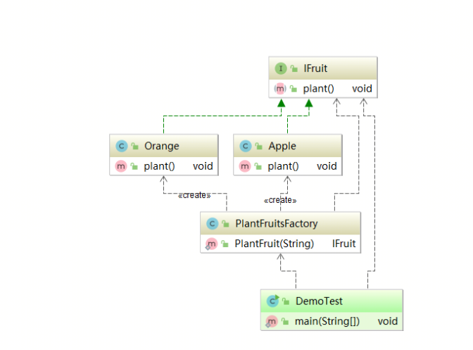 父类IFruit指向子类Apple的引用,调用方代码需要依赖Aplle,这样随着种植水果的业务越来越多了,调用方的代码就会变得越来越臃肿了。我们要想办法把这种依赖减弱,把创建细节隐藏起来。虽然目前代码中,我们创建的的对象并不复杂,但是从打码设计角度来讲不易扩展。我们用简单工厂对代码进行优化。