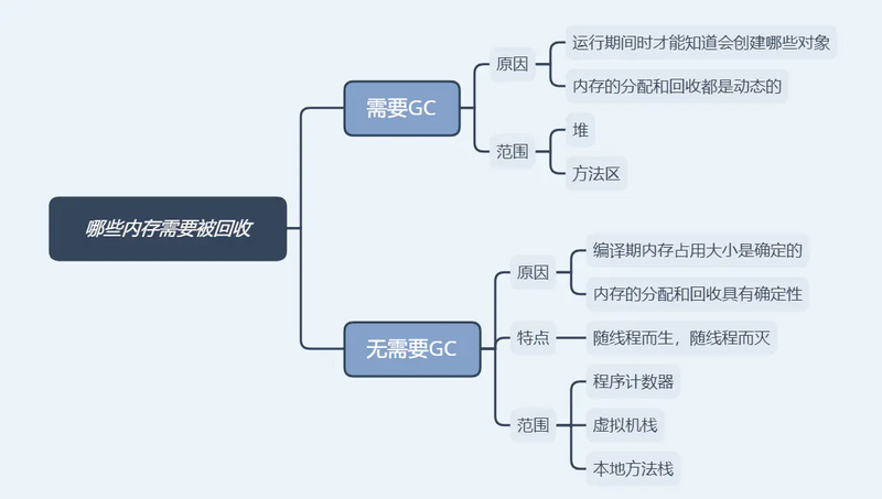 一句话:GC 主要关注 堆和方法区