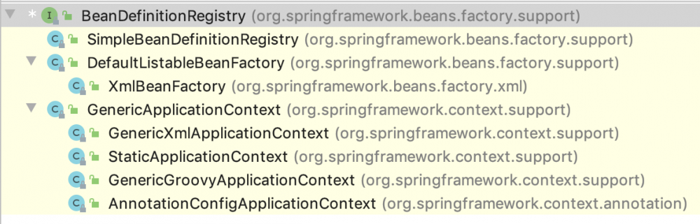 再翻一翻,实现了 registerBeanDefinition(String beanName, BeanDefinition beanDefinition) 的也就两处