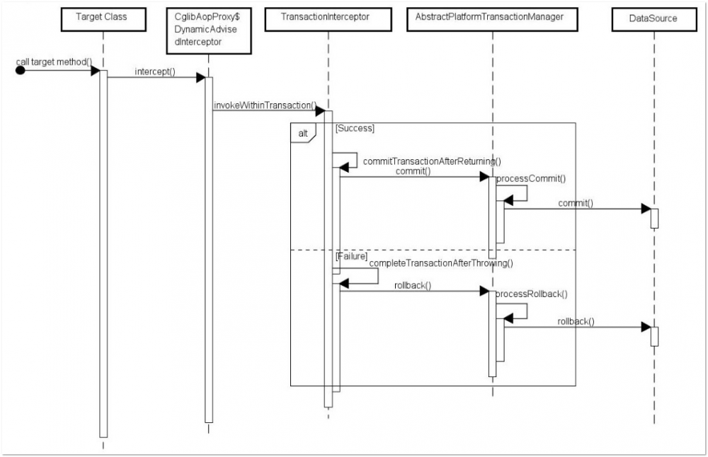 spring 的事务是在调用业务方法之前开始的,业务方法执行完毕之后才执行 commit or rollback ,事务是否执行取决于是否抛出 runtime异常 。如果抛出 runtime exception 并在你的业务方法中没有catch到的话,事务会回滚。