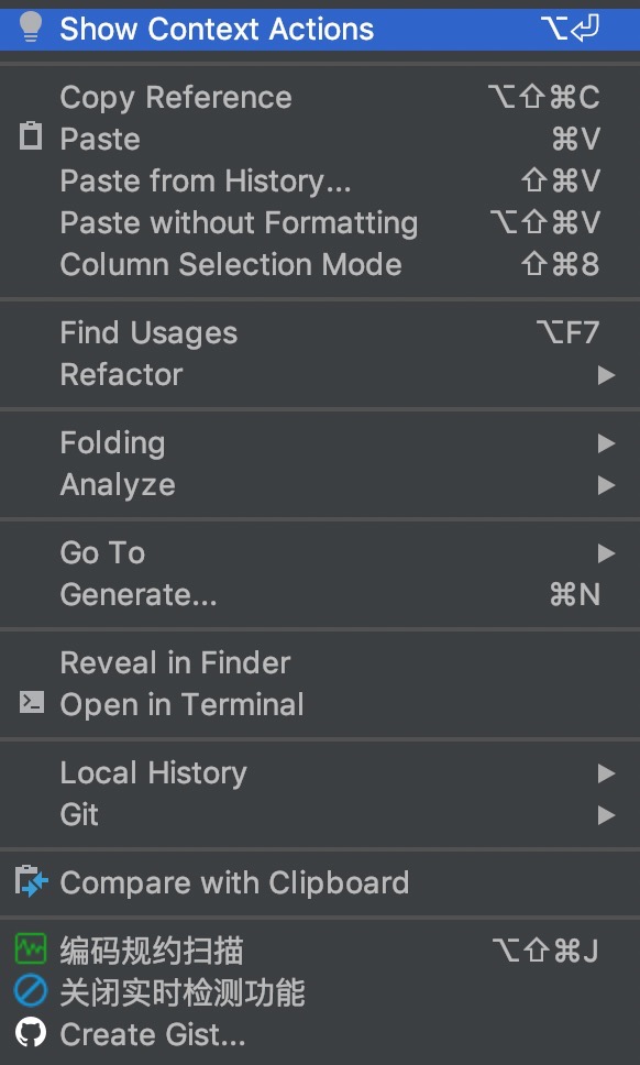 但是,如果我们真正遇到这样的“大神级”代码怎么办?还好有IDEA这样的神奇帮助我们,鼠标移动到代码处,点击右键出现以下菜单: