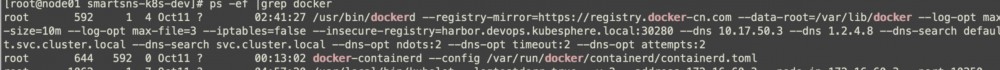 [Service] Environment="DOCKER_OPTS= --registry-mirror=https://registry.docker-cn.com --data-root=/var/lib/docker --log-opt max-size=10m --log-opt max-file=3 --insecure-registry=harbor.devops.kubesphere.local:30280"