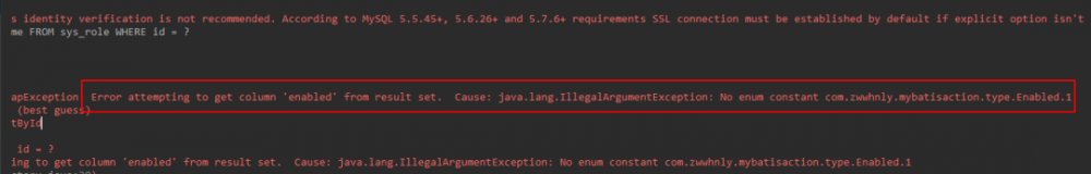而数据库中enabled字段的类型是int,所以在查询到角色信息将int类型的值1转换为Enabled类型报错。