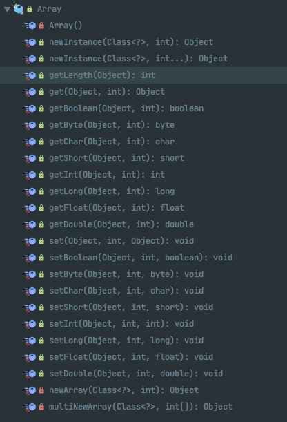 Array 类中基本都是 getXX 和 setXX 方法,