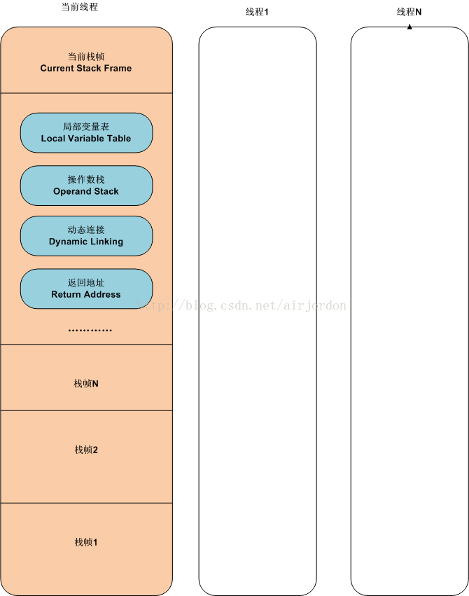jvm 运行时内存规划中有一块区域叫做虚拟机栈,被划分为线程私有的空间,线程中方法的运行则对应该区域栈帧的入栈,出栈,一个方法对应一个栈帧。