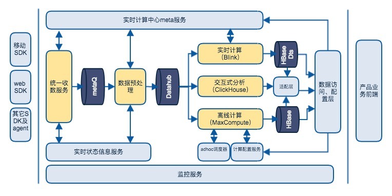 离线计算使用阿里云MaxCompute,例行计算使用MaxCompute的SQL+UDX通过类似Apache Tez的DAG计算完成工作,对速度要求较高的adhoc分析使用MaxCompute集成的Spark进行计算。