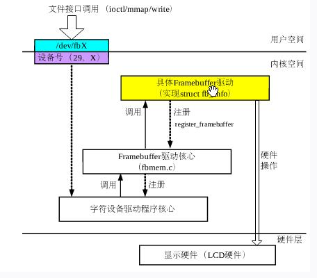 FrameBuffer 是 Linux 系统中的一种显示驱动接口。FrameBuffer 将显示硬件进行抽象,对用户表现为一块显示内存,用户空间进程可以直接操作这块内存空间完成写屏操作。FrameBuffer 在设备上表现为一个字符设备,设备节点为 /dev/fb* 。用户对设备节点进程 open、mmap、ioctl、read、write 等操作,就可以控制最终的显示输出。