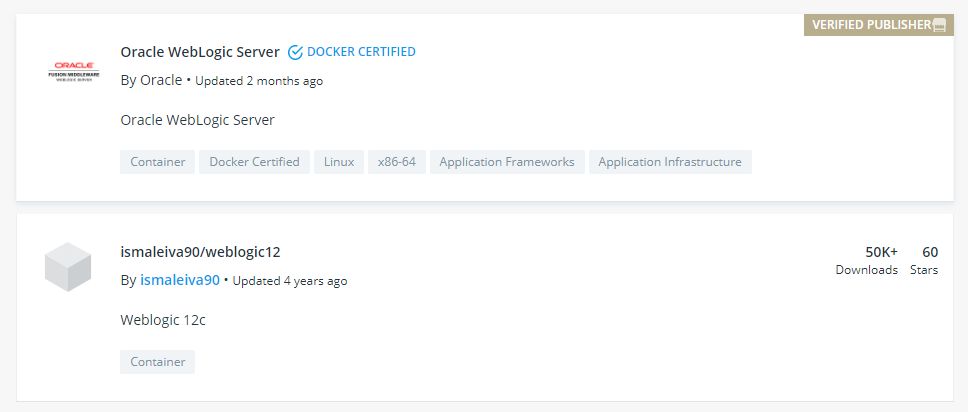以前没接触过这个中间件,所以不太了解怎么使用。直接 docker run -d oracle/weblogic 之后发现并不能将其运行起来。