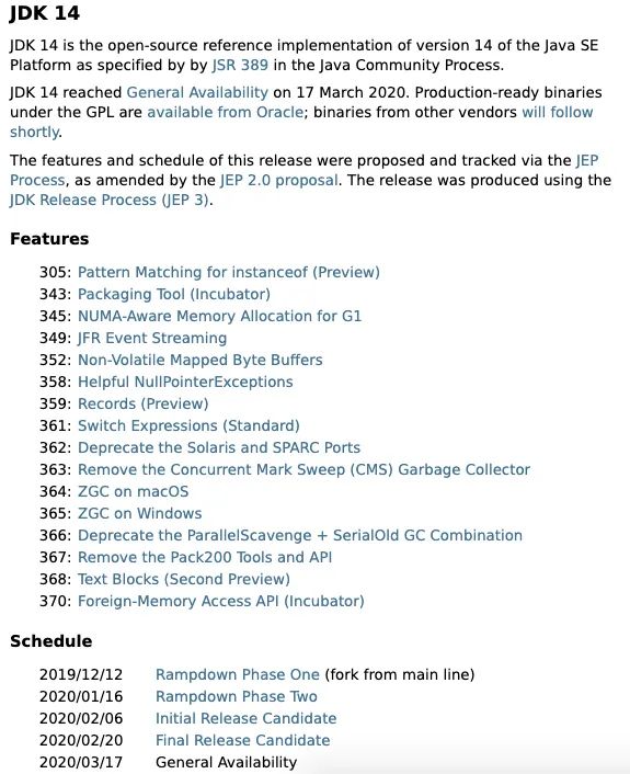 Java 14 GA(General Availability) 版本已经于3月17日发布。