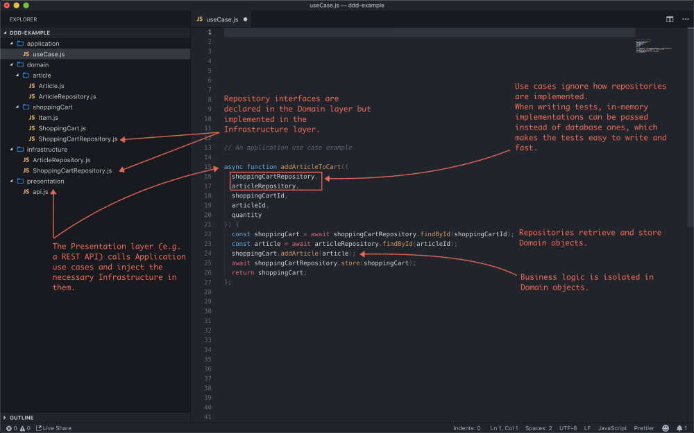 你会在本文中找到对领域驱动设计的介绍,该介绍主要按照Eric Evans的书中的解释进行。还存在其他实现和词汇,以及相似体系结构共享相同原理,例如清洁架构和六边形架构。