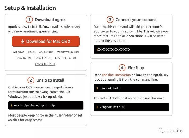 因此,通过您选择的任何一种方法,前往 Ngrok 并注册一个帐户。然后,您应该会看到下面的截图,其中显示了如何解压缩和运行它。