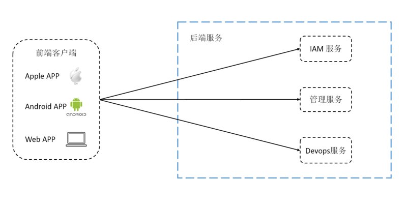 对于Choerodon 而言,前端通过ReactJs实现,后端服务则通过Java,GoLang等多种语言实现。我们通过将后端拆分成许多个单独的业务服务,选择不同的语言切实地帮助我们来实现系统功能,这种面向服务的模式给我们带来了开发的便捷性,但是也带来了新的问题。服务之间如何做到相互通信,前端与后端又是如何进行通信的,是我们需要去解决的问题。