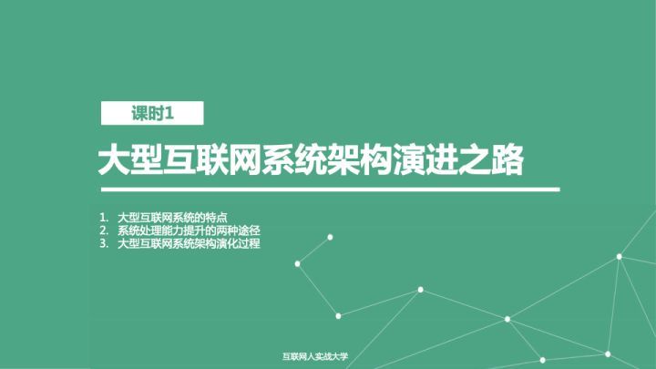 这节课的主题是大型互联网系统架构的演进之路,主要包含了三部分内容: