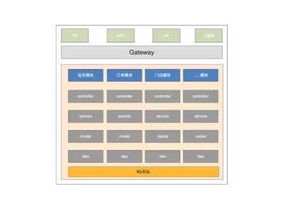 上图是我们单体服务时的架构图,分为会员、订单、门店等很多模块,看架构图似乎还算清晰,但是真正看到包结构的时候,真的令人头秃,改起代码特别头痛。单体服务带来的几个挑战: