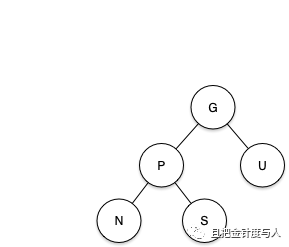 2. 如果 **N** 为 **P** 左节点,则对 **G** 进行 Right Rotation