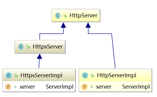 HttpServerImpl 和 HttpsServerImpl 虽然都是实现类,但是它们的方法都是调用 ServerImpl 的方法,都是围绕ServerImpl的