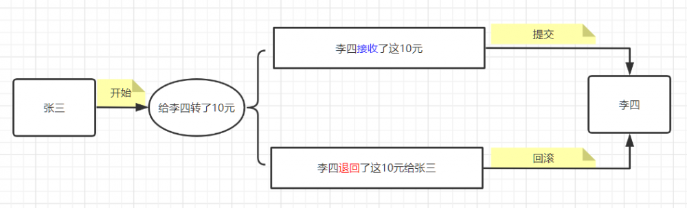 相当于目前的微信转账,张三给李四发了10元的转账。有以下三种状态