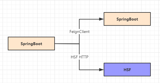 所以,我们为了拥抱开源,全部采用 SpringCloud ,系统与系统之间调用是通过 FeignClient 的方式来调用的,但是由于底层的部分系统由于时间、人力、历史等原因,无法在短时间内都像我们一样能积极响应。所以就出现了 SpringCloud 与HSF服务同时存在的情况,为了大家再编码过程中都能像本地调用( TCP , FeignClient ),所以就写了一个代理工具。