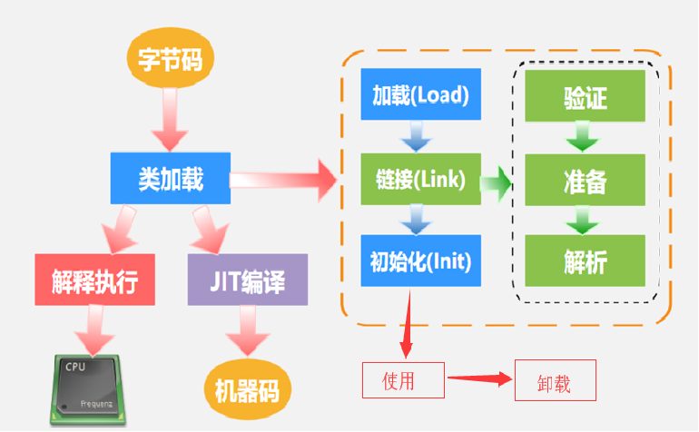 虚拟机将类的数据从Class文件加载到内存,并对数据进行校验,转换解析,初始化,最终形成可以被虚拟机使用的Java类型,称为JVM的类加载机制。