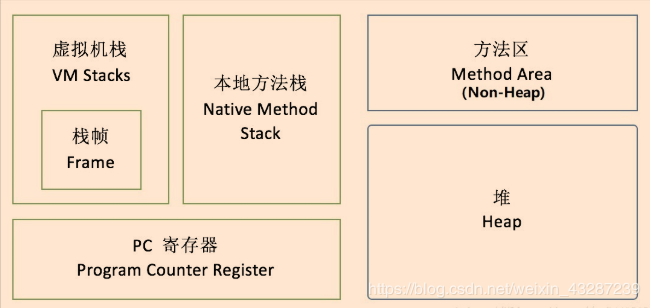 虚拟机栈: 虚拟机栈中执行每个方法的时候,都会创建一个栈帧用于存储局部变量表,操作数栈,动态链接,方法出口等信息。 本地方法栈: 与虚拟机栈发挥的作用相似,相比于虚拟机栈为Java方法服务,本地方法栈为虚拟机使用的Native方法服务,执行每个本地方法的时候,都会创建一个栈帧用于存储局部变量表,操作数栈,动态链接,方法出口等信息。 方法区: 它用于存储已被虚拟机加载的 类信息,常量,静态变量 ,即时编译器编译后的代码等数据,方法区在JDK1.7版本及之前称为永久代,从JDK1.8之后永久代被移除。 堆: 堆是Java对象的存储区域,任何new字段分配的 Java对象实例和数组 ,都被分配在了堆上,Java堆可使用 - Xms / - Xmx 进行内存控制,从JDK1.7版本之后, 运行时常量池 从方法区移到了堆上。 程序计数器: 指示Java虚拟机下一条需要执行的字节码指令。 从图中我们可以看出JAVA8的JVM 用元空间取代了永久代