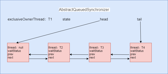 去掉一些普通情况不会涉及的属性,如果有四个线程竞争,结构如下图所示: