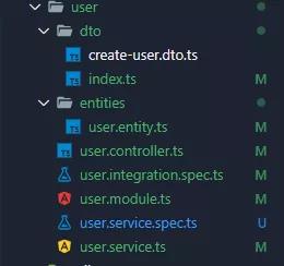 在本示例中,我们将 UserModule 与 TypeORM 模块(存在依赖关系)结合起来,检查新用户是否被正确保存在数据库内。