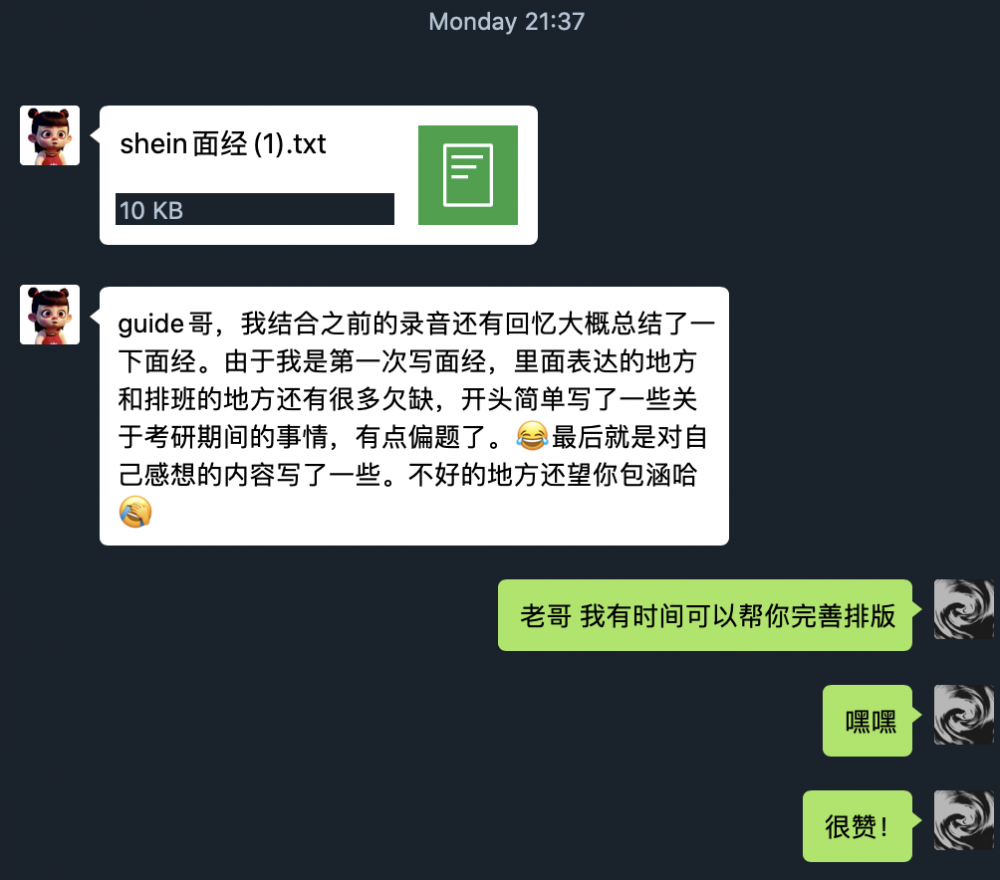 还是要准备扎实的基础,不要靠直接背诵面试题这种方式来应付面试,方能以不变应万变。最后,吃水不忘挖井人,非常感谢 Guide 哥的帮助,Guide 哥的公众号和 github 在我学习 Java 的道路上包括后续的准备面试的过程中对我的帮助都非常大。