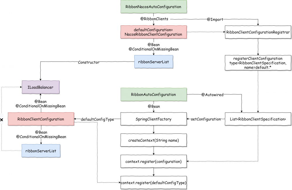 最近看Ribbon源码的时候发现,虽然Ribbon中指定了ServerList的Bean,但是实际使用中却是调用的Nacos的服务,并没有用到自身的ServerList实现(ConfigurationBasedServerList),于是继续深入看了下,找到原因记录在此